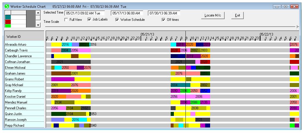 a display of current status and projected progress of jobs and a